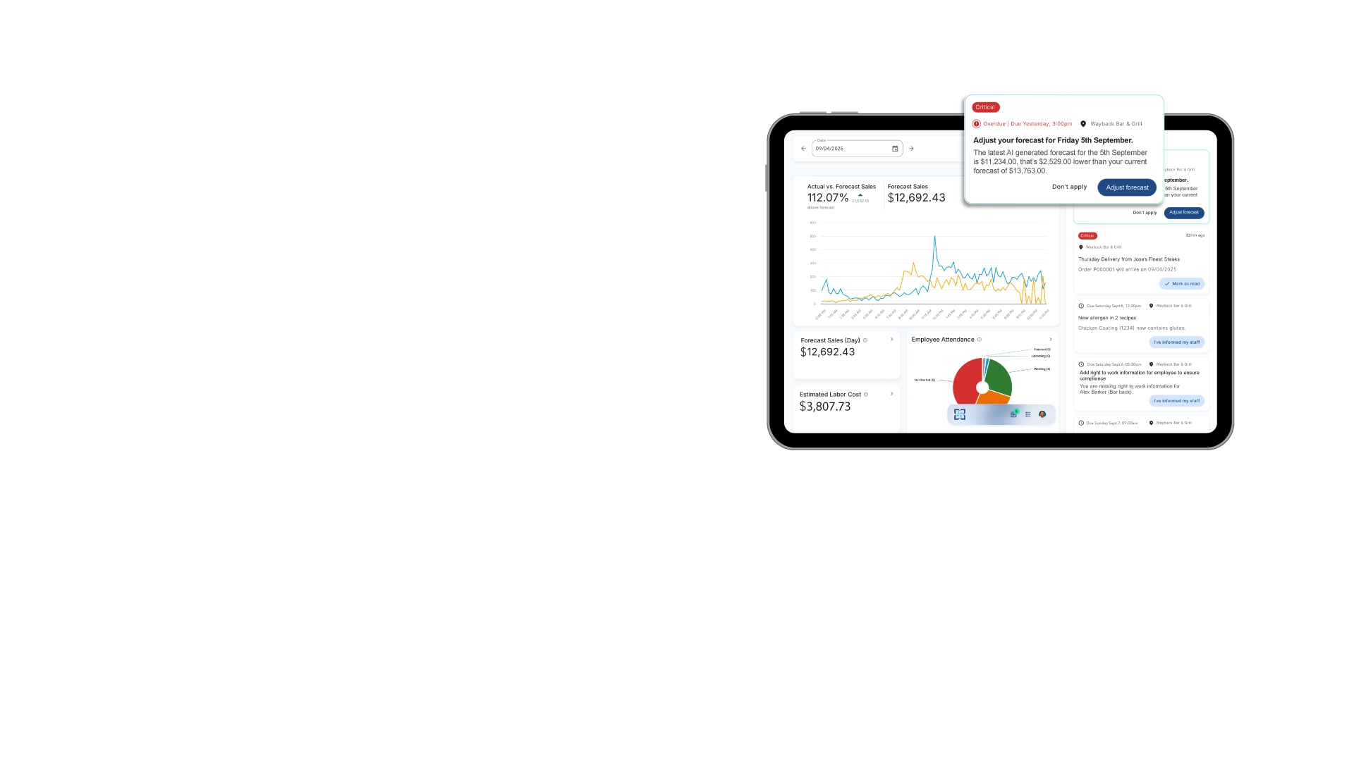 Real-time insights and AI-powered actions keep staffing, stock, and shifts on track—so managers can stop problems before they hit sales or service.