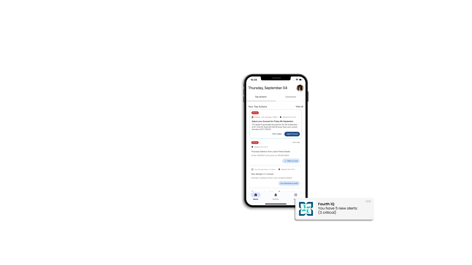 The iQ App doesn’t just flag issues—it guides managers to the best next action, helping them fix problems fast, protect margins, and keep shifts running smoothly.